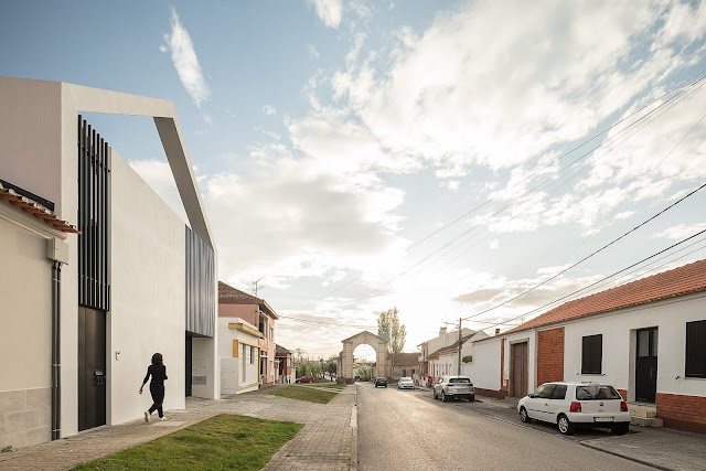 The Arch House follows the continuity of the neighbour buildings, with the main facade ensuring the alignment with the consolidated pre-existence. However, it is stylized to allow the permeability of light and views, in a symbolic game of association with the presence of the Arch, which marks the entrance to the place of Vista Alegre. This debugging work creates the "crowning" of this facade, and assumes itself as a drawing of any child - My house!