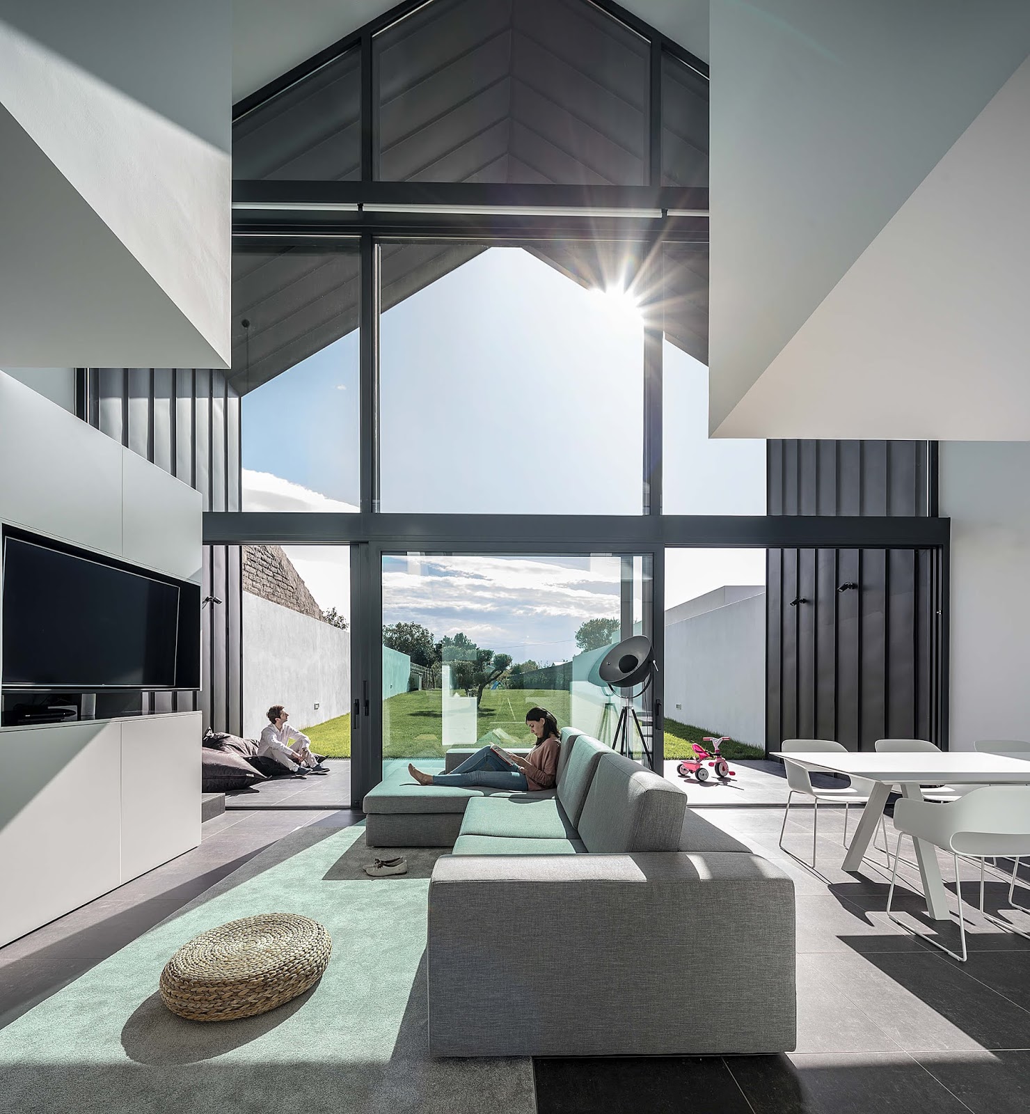 In a shameless way, the back facade is fully glazed in order to relate with the green backyard, ensuring the direct relation with the outside.
