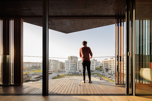 The existing movement in the city center is visible in the blades present on the facade. These, in addition to giving privacy to the interior of the dwellings when desired, create a rhythmic effect of shadows that transcribe to the building an idea of movement and constant transformation.